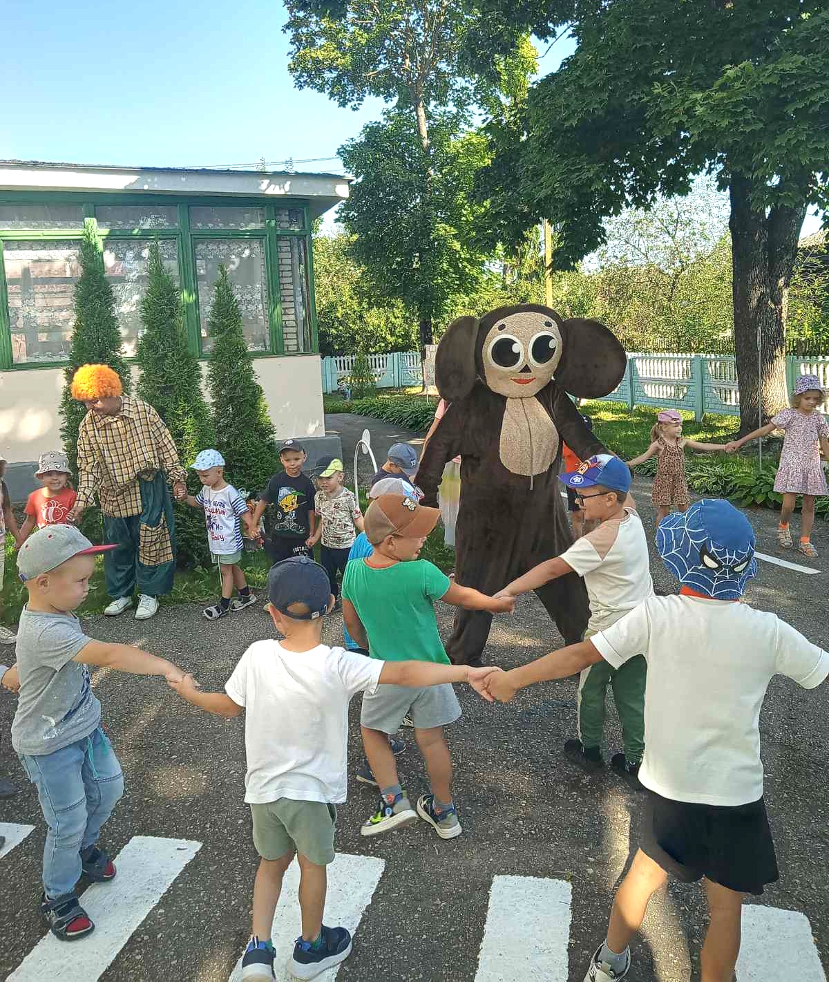 Герои – Чебурашка, Позравлялка и Клоун провели игры ”Светофор“, ”Ростомер“, ”Забей гол“, которые проявили у ребятишек спортивные способности. Закончилось мероприятие весёлыми танцами и сладкими подарками.