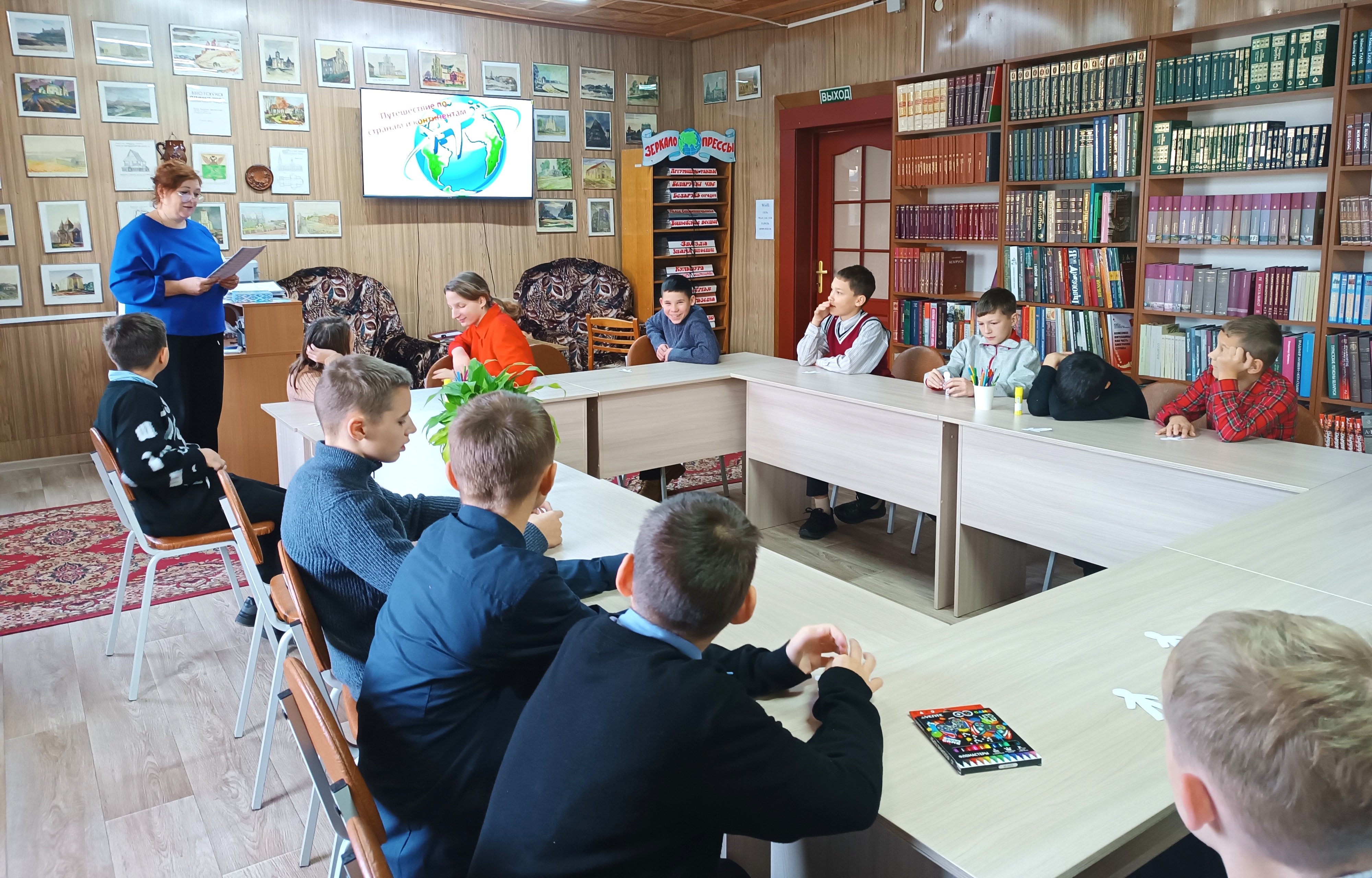 Для учеников 5-7 классов ГУО ”Средняя школа №2 им. А. К. Касинцева“ в центральной районной библиотеке прошёл познавательный час ”По континетам и странам“.