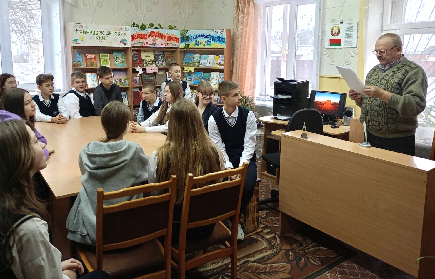 Библиотекарь познакомил школьников с основными этапами творческого и жизненного пути писателя.