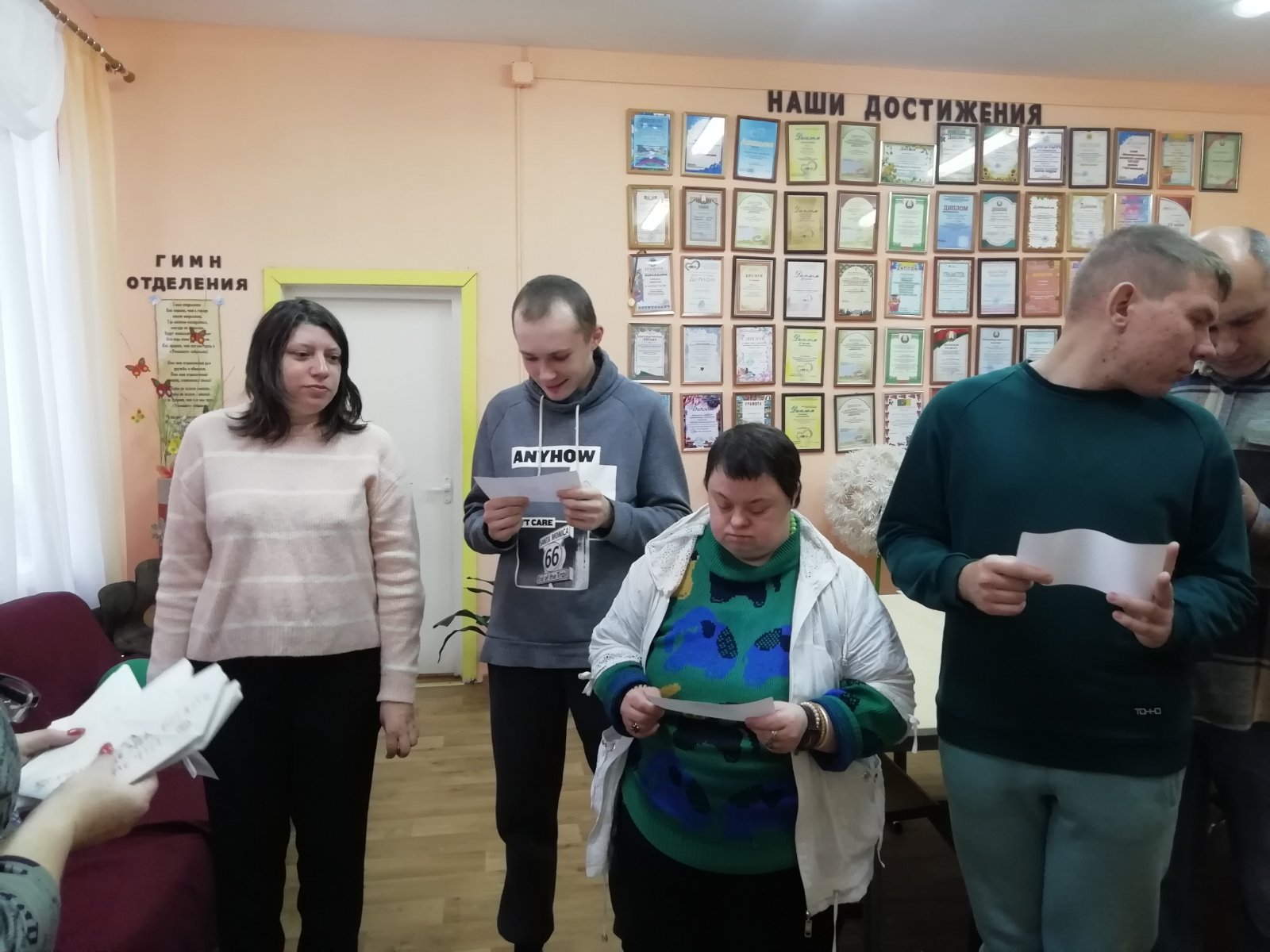 Сотрудники центральной районной библиотеки организовали игровую программу ”В поисках счастья“ в отделении социальной реабилитации, абилитации г. Сенно.
