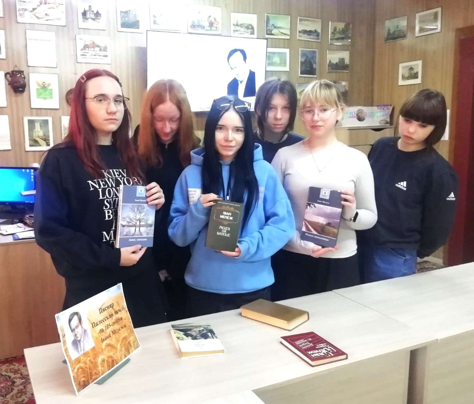 Школьники посмотрели презентацию и видеофильм о жизни и творчестве Ивана Мележа. Познакомились с книгами автора на тематической выставке ”Пясняр Палесскай зямлі“.